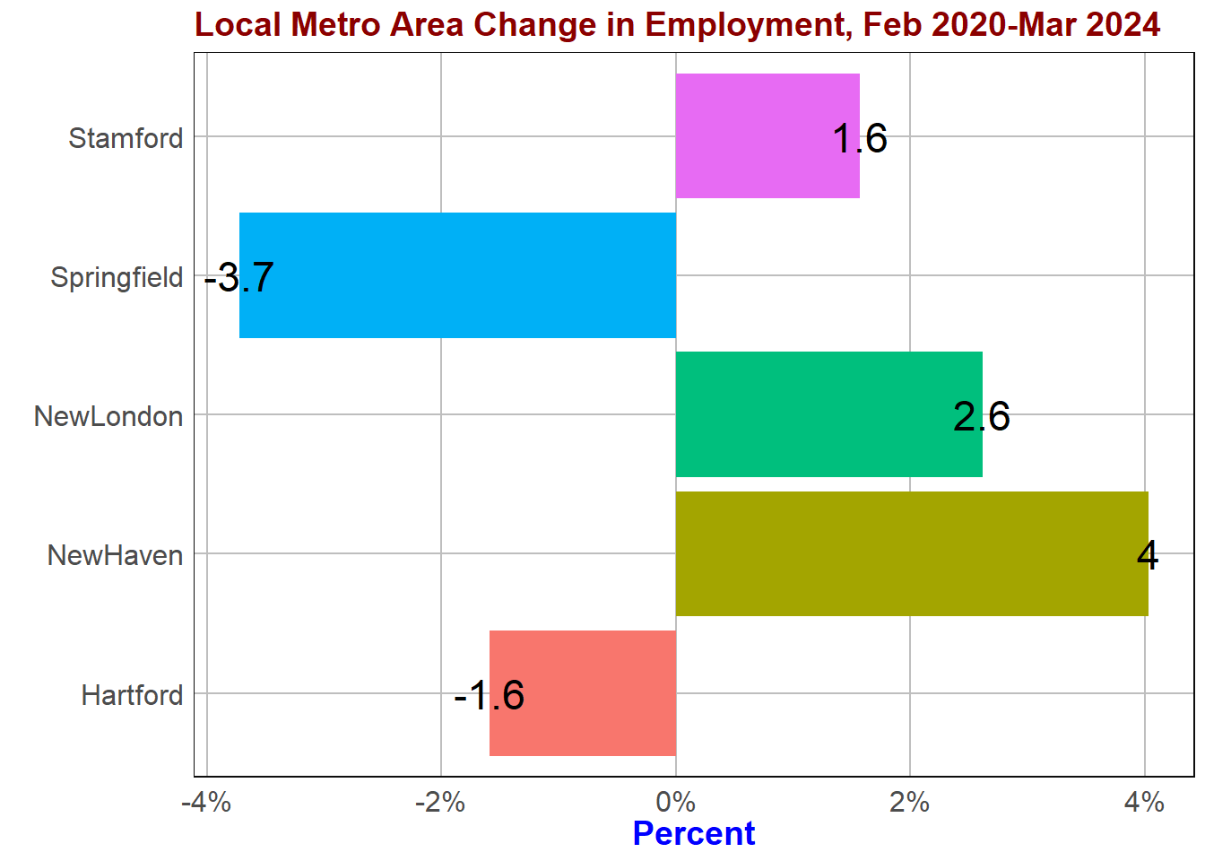 Entering the Covid recession, the metro areas had different momentum propelling it; CT was consdierably slower.