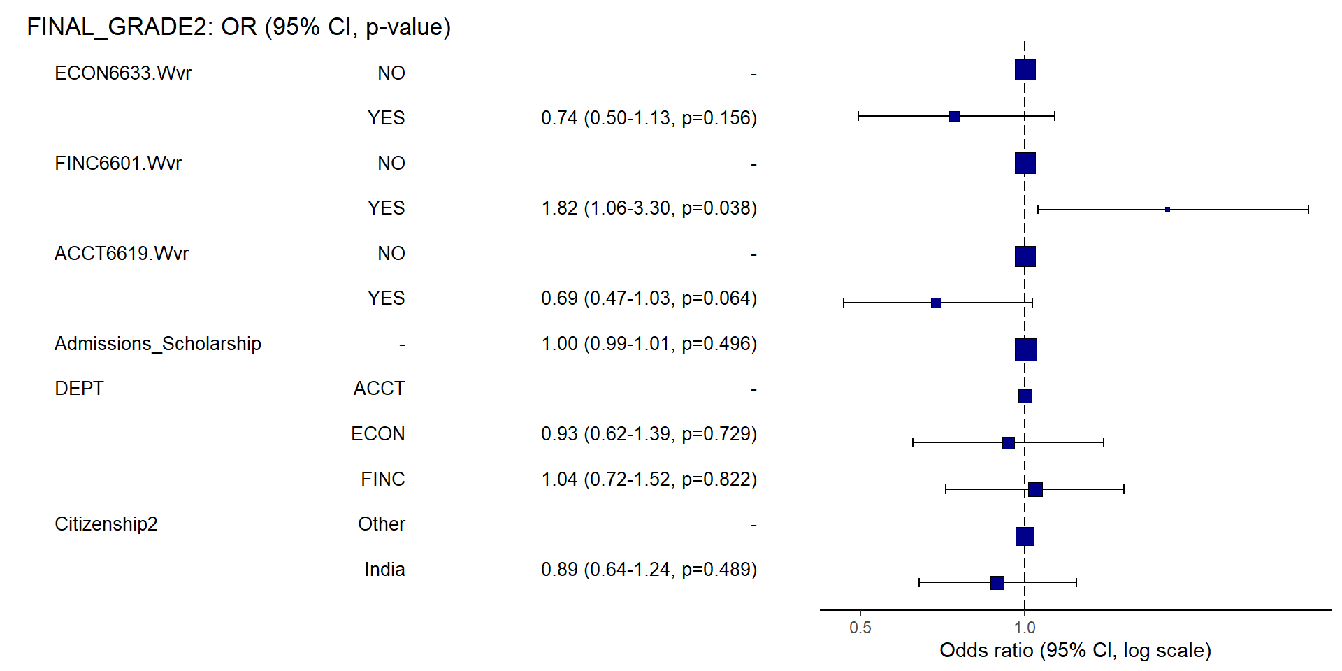 Dependent: FINAL_GRADE2 OR (univariable)